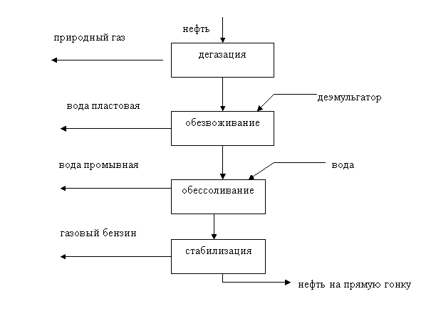 Переработка нефти осуществляется с использованием физических и химических методов в следующей технологической последовательности: