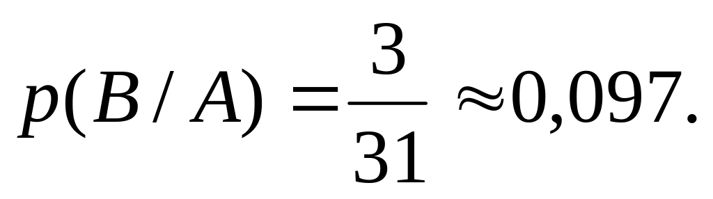Число исходов, благоприятствующих событию В, равно числу способов выбрать один элемент из 16, поэтому Р(A) = N(A)/N() = C116/C419 0,004.