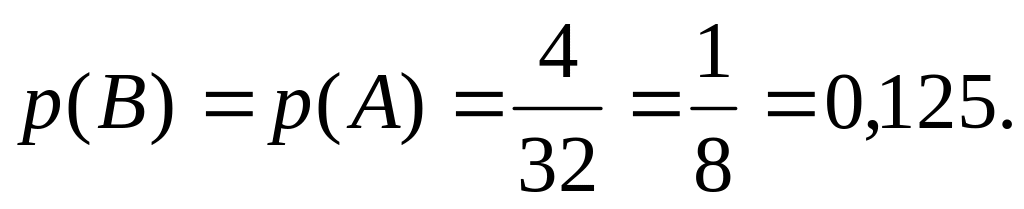 Пример 4. Опыт состоит в четырехкратном выборе с возвращением одной из букв алфавита E = {а, б, к, о, м} и выкладывании слова в порядке поступления букв. Какова вероятность того, что в результате будет выложено слово «мама»?