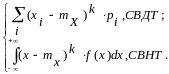 Начальным моментом k-го порядка (k = 0, 1, 2, ...) распределения СВ Х называется действительное число, определяемое по формуле: