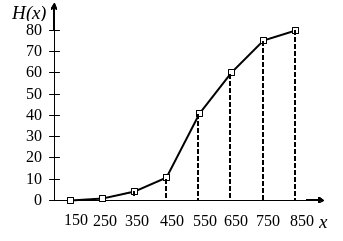 Легко убедиться, что в случае дискретного признака Х в ранжированном вариационном ряду xj = xi при Н(хi) + 1 j Н(хi+1). Для рассматриваемого примера: xj = 450 при 12 j 41.