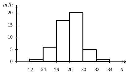 Частота достигает максимума: mi = mmax = 40 при xi = 29, поэтому: