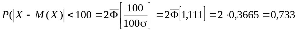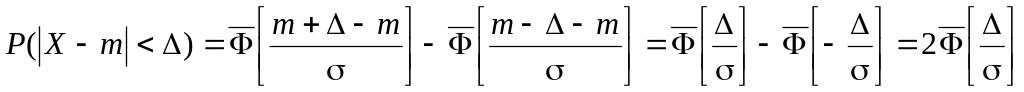 Для вероятности попадания на симметричный относительно математического ожидания интервал справедлива формула: P( X - mX ) = 2Ф(/) - 1.