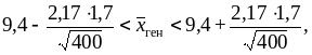 9,4 – 0,18 < ген < 9,4 + 0,18. Итак, 9,22 < ген < 9,58, то есть средний трудовой стаж рабочих всего коллектива лежит в пределах от 9,22 года до 9,58 года (с надежностью = 0,97).