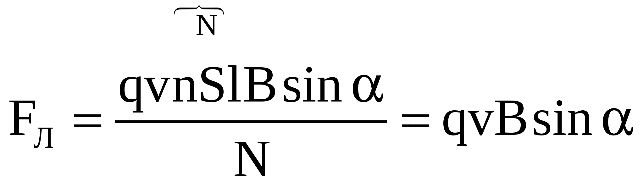 Модуль силы Лоренца равен отношению модуля силы Ампера, действующей на участок проводника, к числу заряженных частиц в этом участке проводника: