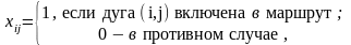 Ограничения (3.3) обеспечивают требования въезда в каждый j-й город ровно 1 раз (вхождения в j-ю вершину графа ровно одной дуги). Ограничения (3.4) обеспечивают требования выезда из каждого i-го города ровно 1 раз (выхода из i-й вершины графа ровно одной дуги). Задача представляет собой задачу дискретного программирования с псевдобулевыми переменными.