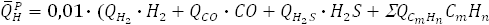 Для газообразного топлива низшая удельная теплота сгорания определяется, МДж/кг по формуле: