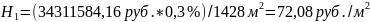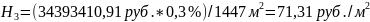 Рассчитаем величину земельного налога и налога на имущество физических лиц, исчисляемых исходя из кадастровой стоимости, за 1 м2 по формуле 3.