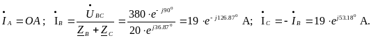 Значення струмів в фазах навантаження в комплексній формі