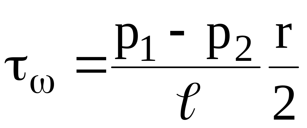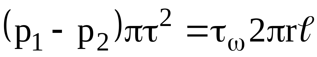 Трубы являются самым распространённым видом поверхности теплопередачи. Введём понятие коэффициента сопротивления . При движении жидкости в трубе в результате трения происходит уменьшение давления жидкости по длине трубы. Рассмотрим стабильное течение, когда распределение скорости по сечению трубы не изменяется по длине трубы. В этом случае цилиндрические объёмы жидкости между сечениями 1 – 1 и 2 – 2 находятся в равновесии. Так как силы инерции отсутствуют, то на этот объём действуют силы давления и силы трения. Поэтому в случае равновесия сила трения равна силе давления.