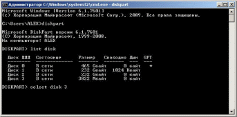 Необхідно точно визначити під якою назвою вказана флешка яку ви збираєтеся форматувати. Для прикладу запропонована флешка на 4 ГБ позначена як диск 3 тому наступна команда select disk 3.(якщо не хочете форматувати замість вашої флешки локальний тому вашого жорсткого диска, визначте її точно і складіть команду правильно, якщо ваша флешка визначена як Диск 2, то команда для вас буде select disk 2) (Рисунок 2.25)