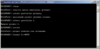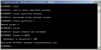 Рисунок 2.33 – Вводимо команду format fs = NTFS і проводимо форматування
