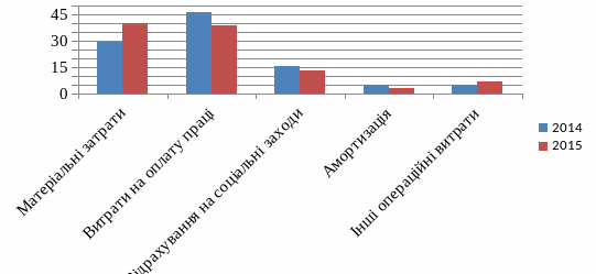 Структура операційних витрат за елементами ТДВ “Бориславський ЕЛМЗ” за 2014-2015 роки