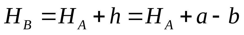 т.е. при нивелировании вперед превышение равно высоте прибора минус отсчет по рейке. Тогда высота точки В