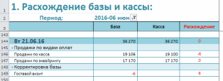 В итоге в темно-синем поле за 21.06.16 в столбце «Расхождение» значение равно «0», что и требуется.