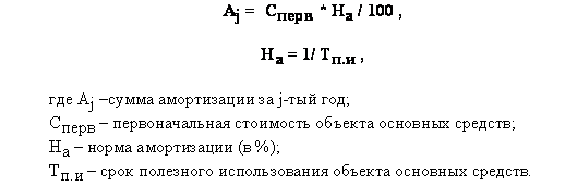 Линейный способ – списание стоимости объекта равными суммами в течение срока его службы: