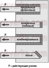 - продольные (фланговые) – направление действующего усилия параллельно оси сварного шва;