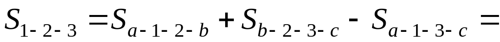 Расчетная формула для определения площади многоугольника (в простейшем случае треугольника – рис. 22):