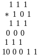 Даны числа 111(2) и 101(2). Найти произведение этих чисел.