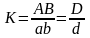 При проекционном способе фотопечати масштаб позитива, как правило, крупнее масштаба негатива. При этом коэффициент увеличения К равен отношению длин линий на позитиве AB и негативе ab негативе или же отношению расстояний от объектива до позитива к расстоянию от объектива до негатива: