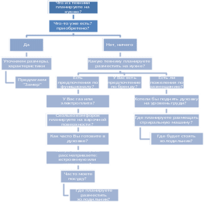 При выяснении детальной информации о будущей кухни, используйте схемы задавания вопросов, приведенные ниже.