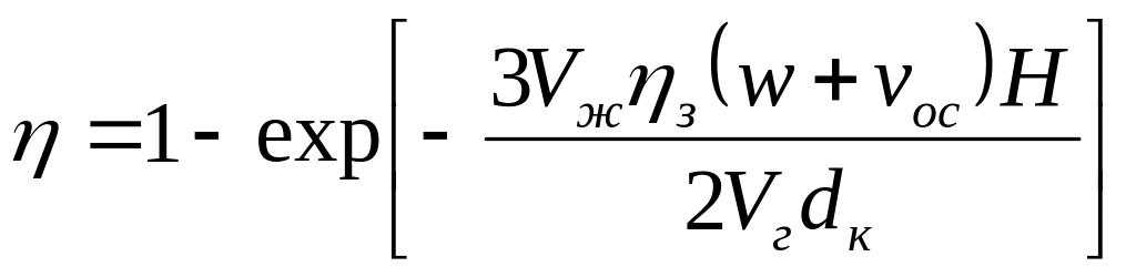 При относительно небольшом удельном орошении (0,1-1,0 л/м3) и при значениях Stk = 0,1 1,0 эффективность осаждения на каплях можно определить по эмпирической формуле Ленгмюра и Блоджетта: