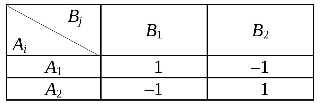 Здесь стратегии А1 и В1 – игроки А и В выбирают “герб”, а А2 и В2 – игроки А и В выбирают “решку”.