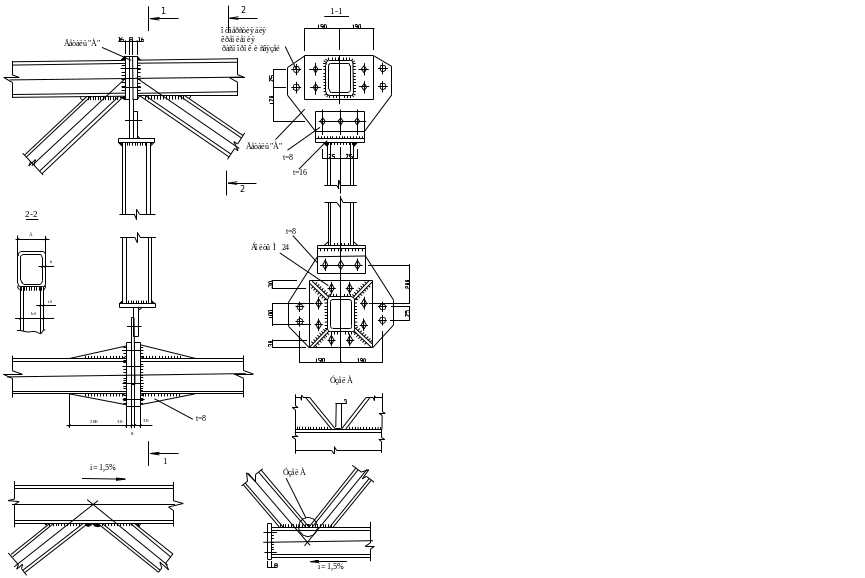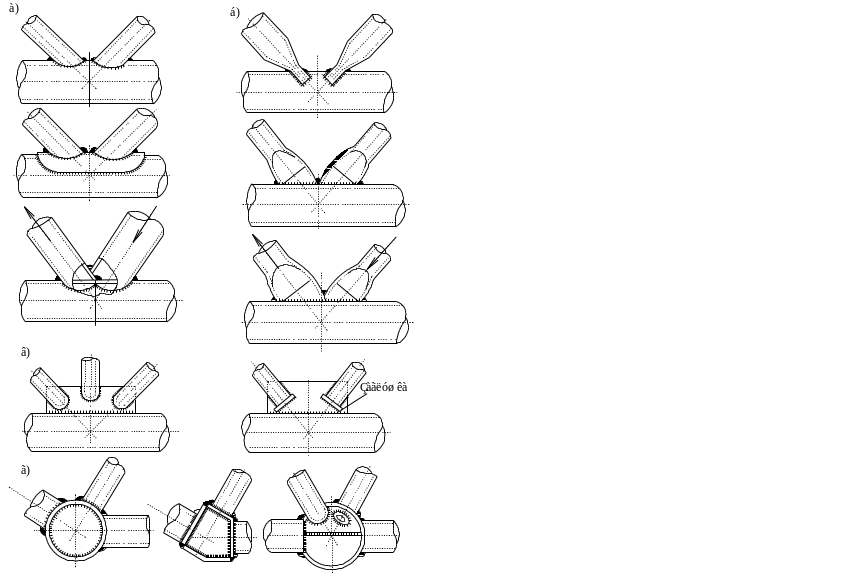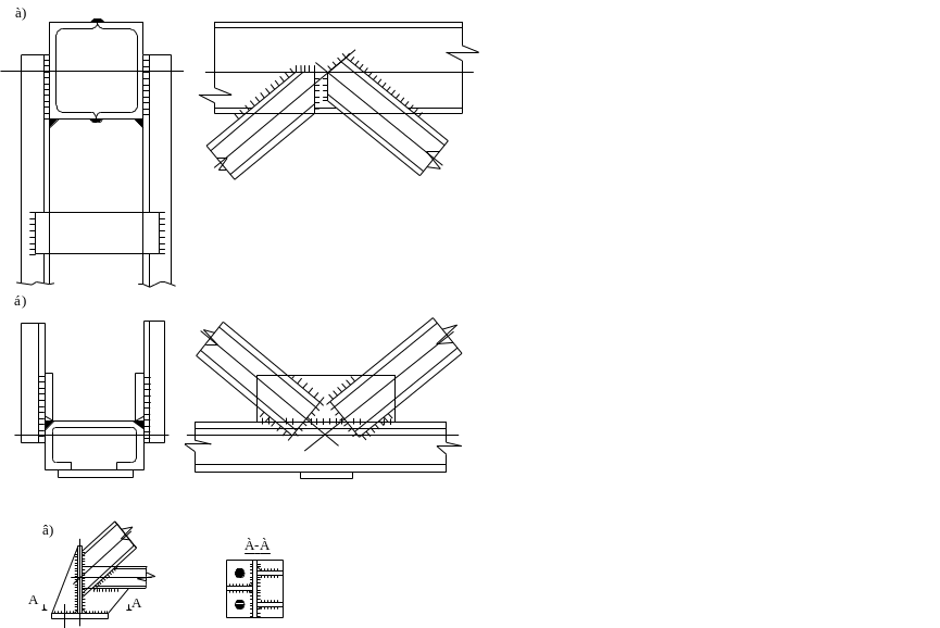 Рис. 49 Узлы ферм из замкнутых гнутосварных профилей.
