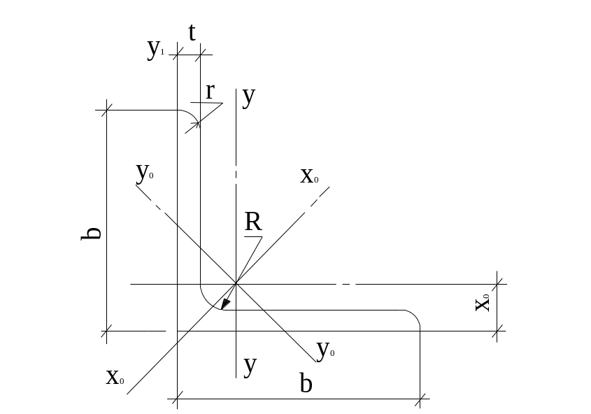b – ширина полки; t – толщина полки; R – радиус внутреннего закругления;