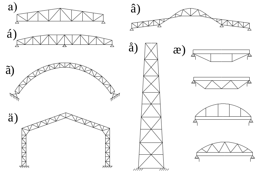 Рис. 21 Конструктивные типы ферм.