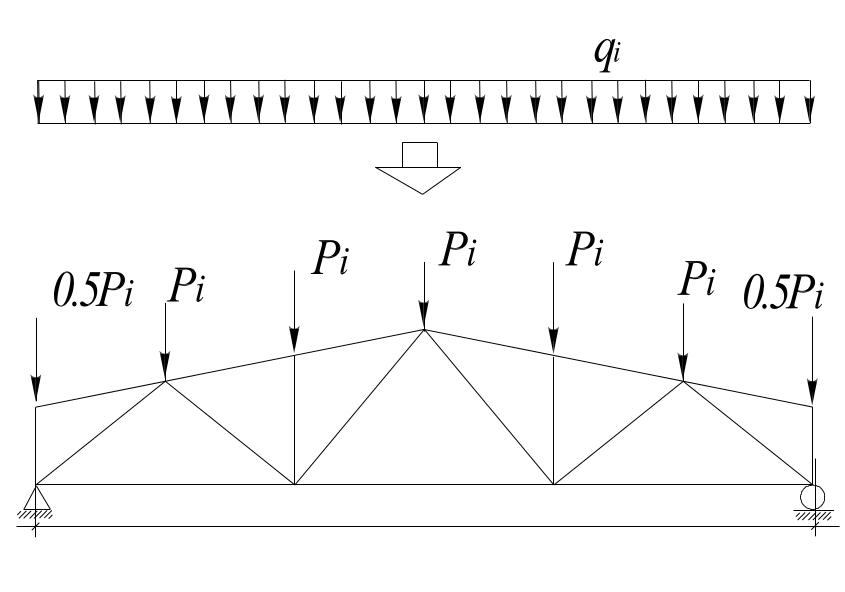 Рис.28 Ферма с узловой вертикальной нагрузкой