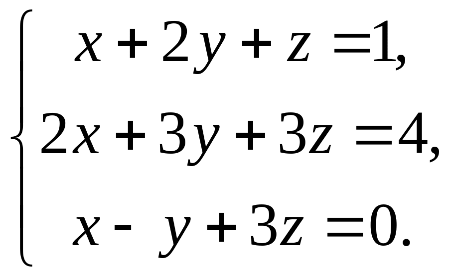 Пример 4. Решить систему трех уравнений с тремя неизвестными методом Гаусса.