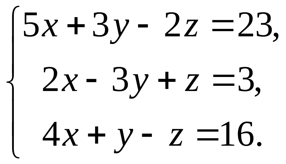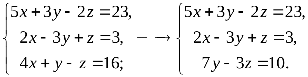 Исключим из третьего уравнения системы переменную . Умножим третье уравнение на 3 и сложим со вторым уравнением системы. Получим: