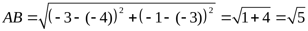 Подставляя в формулу (5) координаты вершин треугольника , находим длины сторон: