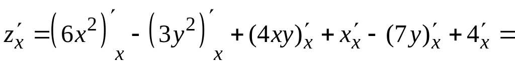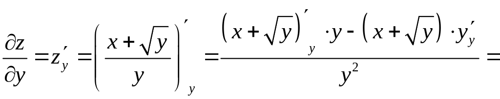Решение. 1). Найдем частную производную функции по переменной , при этом будет считаться постоянной величиной. Имеем: