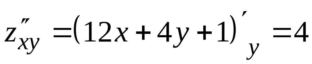 2) Для нахождения смешанных частных производных продифференцируем частную производную по переменной , а частную производную по переменной . Получим