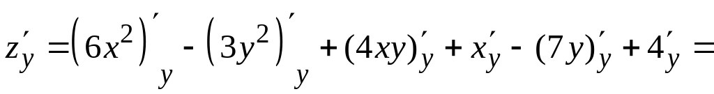 Найдем частную производную функции по переменной , при этом будет считаться постоянной величиной. Имеем: