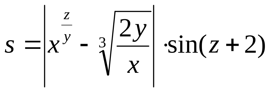 Вычислить значение переменной z по заданной расчетной формуле и набору исходных данных. Значения исходных данных вводить с клавиатуры. На печать вывести значения вводимых исходных данных и результат вычислений, сопровождая вывод наименованием выводимых переменных.