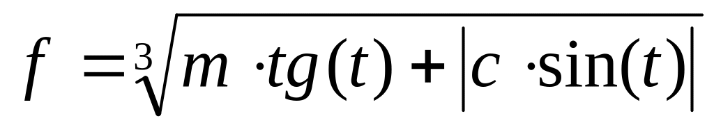 Вычислить значение переменной t по заданной расчетной формуле и набору исходных данных. Значения исходных данных вводить с клавиатуры. На печать вывести значения вводимых исходных данных и результат вычислений, сопровождая вывод наименованием выводимых переменных.
