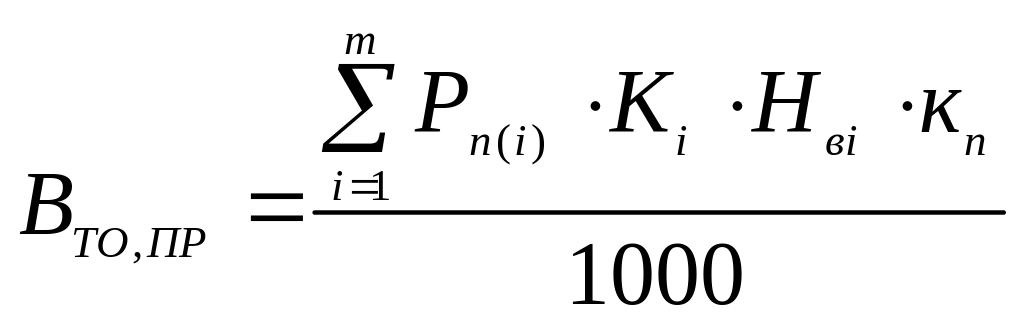 Нві – норма витрат на технічне обслуговування та поточний ремонт і-ї марки автомобіля (додаток Є [11]);