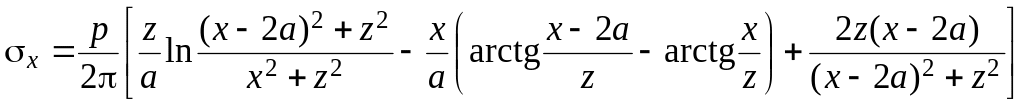 Рисунок 4.39. Расчетная схема задачи Пузыревского об областях пластических деформаций в основании от равномерной полосовой нагрузки