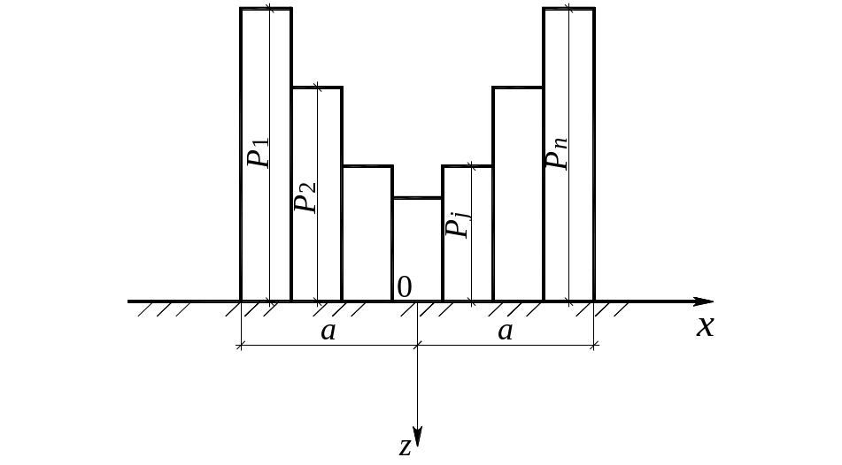 В результате осадку в точке с координатой х, при известном законе распределения давления р(хi) приближенно можно определить выражением