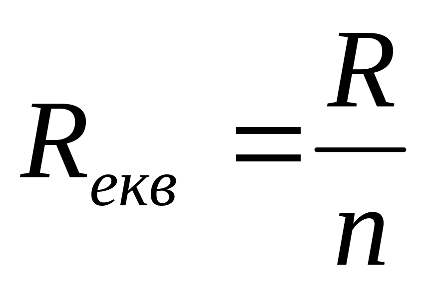 Тобто, еквівалентний опір при паралельному сполучені буде менше, ніж самий менший з опорів. При паралельному з’єднанні n рівних опорів R еквівалентний опір буде: