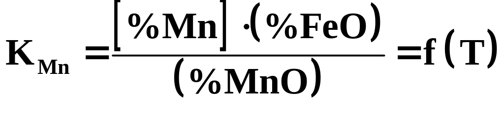 Процесс может быть выражен обобщенной константой равновесия, учитывая, что концентрации в металле и шлаке связаны между собой согласно закону распределения