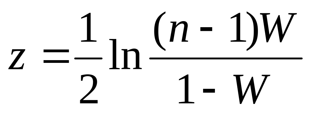 5 этап. Проверяется значимость (отличие) коэффициента конкордации W от нуля с помощью z-критерия Фишера: