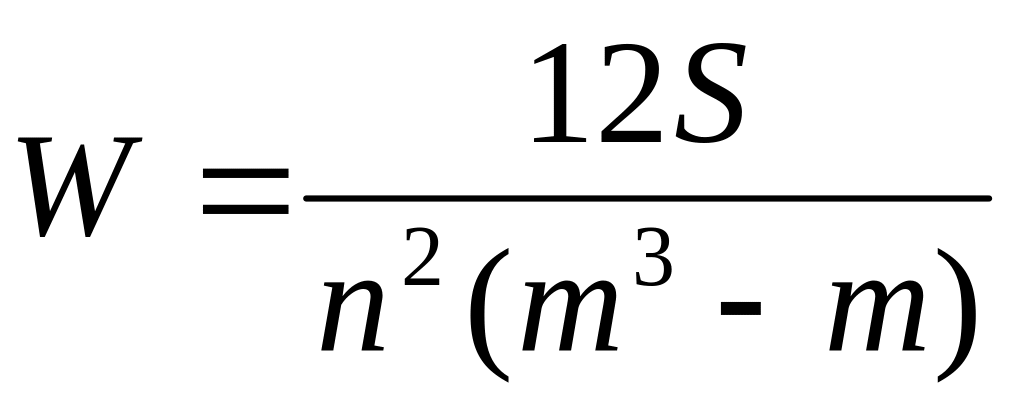 Если в матрице рангов (см. табл. 3) отсутствуют равные значения рангов в каждой из строк, то оценка степени согласованности мнений экспертов определяется по формуле