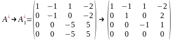 Матрица А при этом преобразуется в матрицу , составленную из первых трех столбцов матрицы . Число ненулевых строк в матрицах и различно и равно 2 и 3 соответственно. Матрице соответствует система