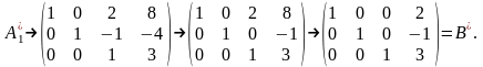 к элементам второй строки прибавим элементы первой строки и из элементов третьей строки вычтем элементы первой строки, в результате А* преобразуется к виду: