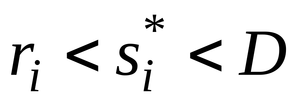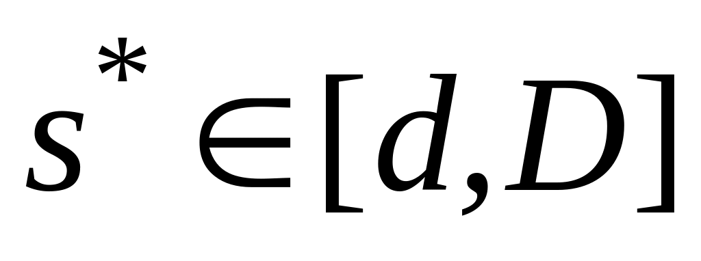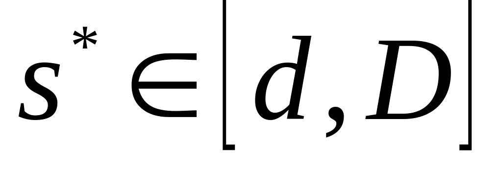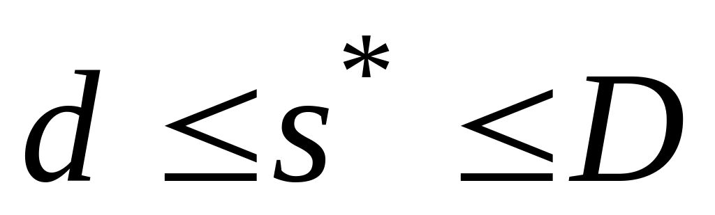 Якщо розташована в середині [d, D], то система рівнянь для визначення ситуації рівноваги матиме вигляд