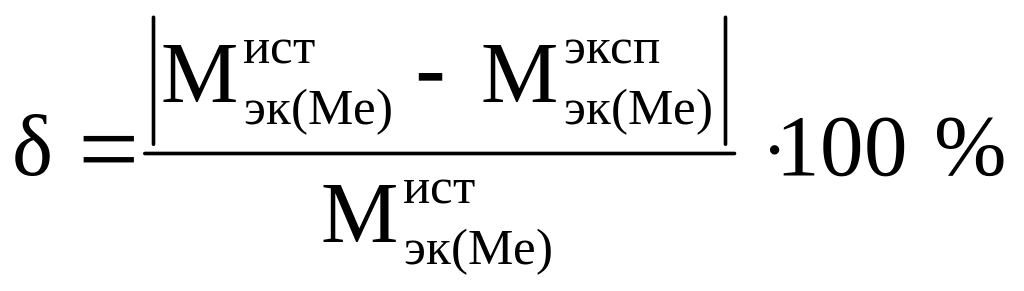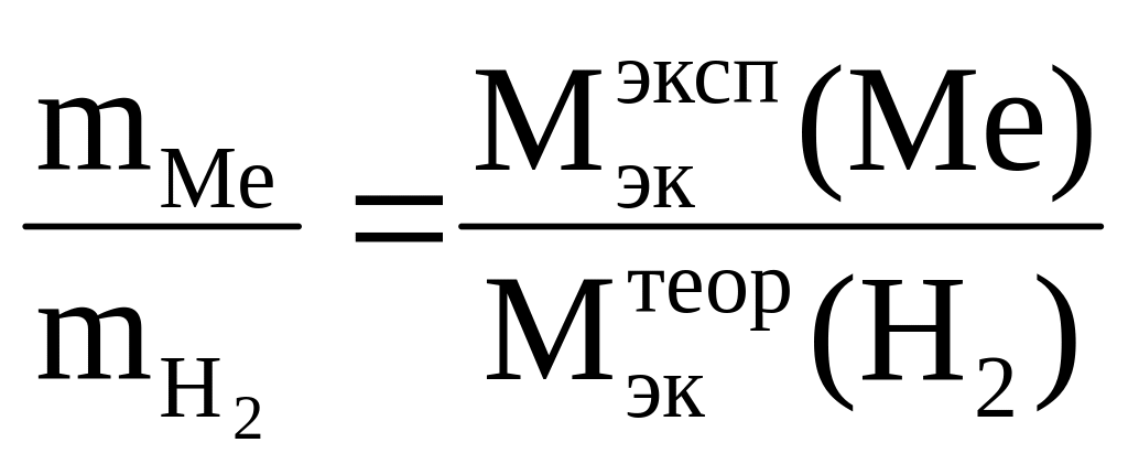 2. Вычислите значение экспериментальной молярной массы эквивалентов металла, используя уравнение закона эквивалентов и молярный объём эквивалентов водорода. Сравните полученное значение молярной массы эквивалентов металла и ранее найденное.